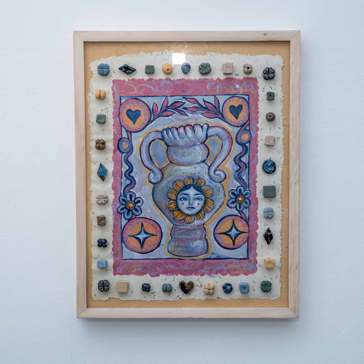 Cat akrilik, manik-manik keramik pada kertas buatan tangan