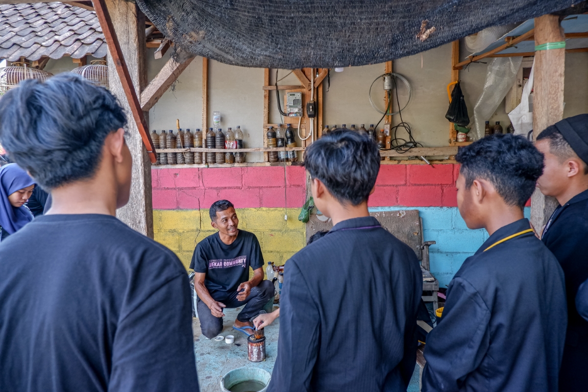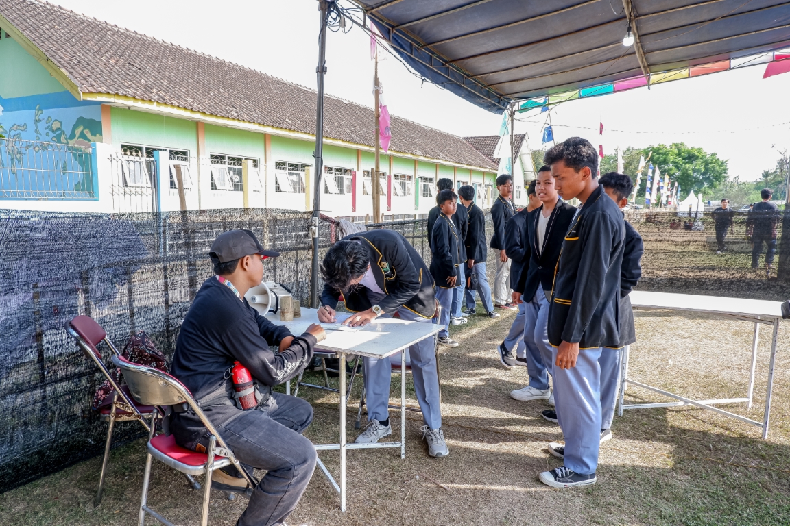 Para peserta adalah 19 murid dari MA Binaul Ummah yang akan menyimak dan mempraktikkan proses pembuatan tosan aji. Sebelum memulai kegiatan lokakarya mereka mengisi daftar kehadiran terlebih dahulu.