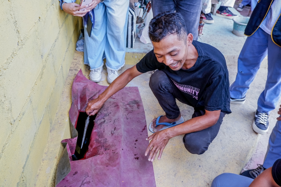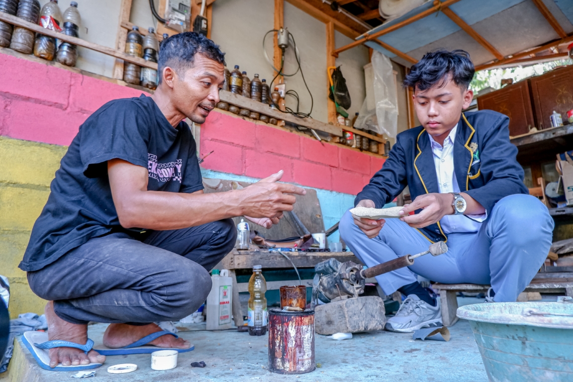 Para peserta mendapatkan kesempatan untuk mencoba praktek langsung membuat bagian-bagian tosan aji. Tentunya dengan bimbingan Empu Agus Suryono untuk mengarahkan keterampilan tangan yang sangat diperlukan dalam pembuatan tosan aji.