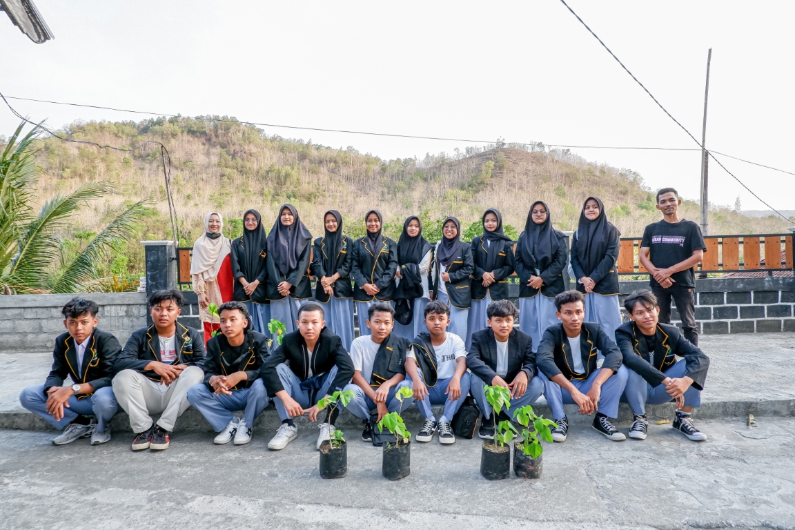 Photo bersama para murid MA Binaul Ummah dan Empu Agus Suryono untuk menutup lokakarya tosan aji sore itu.